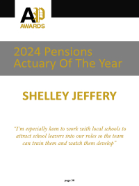 As is traditional I won’t spoil your enjoyment of discovering our winners within the pages of this edition of the magazine by naming them here. However, as is traditional our front cover for this yearly edition is reserved for our Actuary of the Year 2024 and our congratulations go to Gareth Connolly, Senior Director at WTW for winning the award. Massive congratulations to not only all our winners in each category but also to all the nominees that were on the shortlist as the voting went down to the wire in every case.